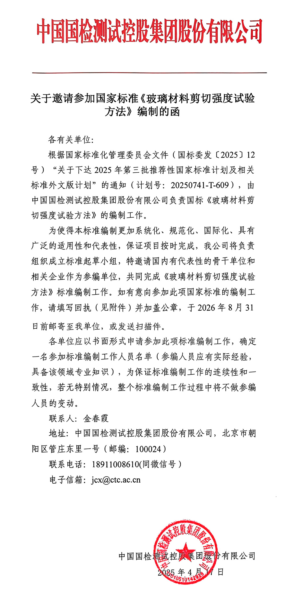 | 關(guān)于邀請(qǐng)參加國(guó)家標(biāo)準(zhǔn)《玻璃材料剪切強(qiáng)度試驗(yàn)方法》編制的函 |